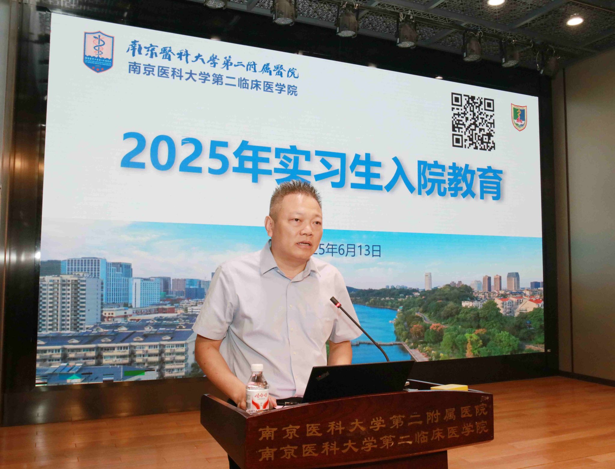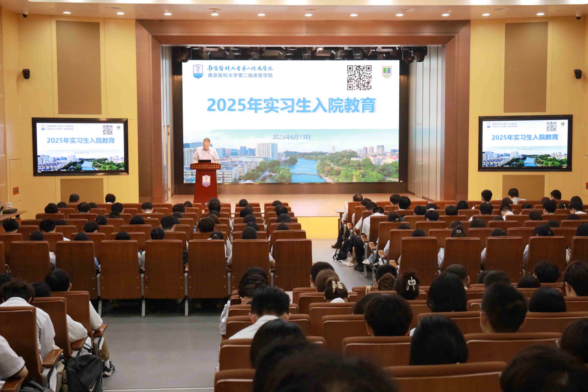 6月13日,2025年實習生崗前教育在我院薩家灣院區大禮堂進行。李慶國院長、戴春筍副院長出席了培訓會,南京醫科大學、東南大學等院校的200余名實習生參加了相關活動。 李慶國院長對新入院的實習生表示了熱烈的歡迎,對醫院的整體情況、學科平臺、臨床環境等進行了全面介紹,希望同學們在臨床的實踐中以德為先,勤學苦練,銳意創新,牢記醫者使命,不斷加強臨床能力培養和科研思維的鍛煉,早日成為一名的合格的醫務工作者。