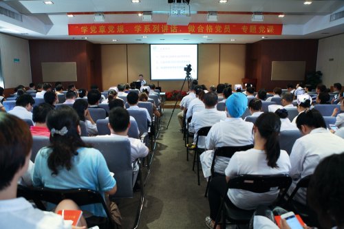 7月28日下午,南京醫科大學黨委陳琪書記應邀來院在姜家園院區四樓學術報告廳,為全體黨員上了一堂題為《學習習總書記系列重要講話精神,大力提升附屬醫院建設水平》“兩學一做”學習教育專題黨課。黨課由院黨委陳春燕書記主持。 陳琪書記從“兩學一做”學習教育的目的意義、任務要求、總體目標,習總書記系列重要講話的思想體系,以五大理念指引高校改革發展和推進研究教學型附屬醫院建設等方面進行了闡述。他以習總書記重要講話的思想體系入手,從核心理念、根本主題、奮斗目標、基本思路、戰略布局、發展理念六個方面,帶領黨員們系統地梳理了習總書記講話的整體脈絡和精神實質,在此基礎上,以五大發展理念為指引,結合學校的“十三五”發展規劃,談了學校的改革發展思路,并結合我院“十三五”發展目標和現狀,就推進醫院教育教學、學科(??疲┙ㄔO、科學研究、黨的建設等工作提出了明確要求。陳琪書記強調,學習習總書記重要講話精神,既是“兩學一做”學習教育的具體要求、重要內容,也是進行宗旨觀念、推動學校和醫院改革發展的必然路徑和內在要求,他要求全體黨員以開展“兩學一做”學習教育為契機,真學、真懂、真信、真用,切實達到思想上堅定不移、理論上融會貫通,行動上常抓不放,真正以講話精神武裝頭腦、指導實踐、推動工作,著力發揮黨員先鋒模范作用和基層黨組織的戰斗堡壘作用,立足崗位、不忘初心、繼續前進,為推進醫院、學校改革發展貢獻智慧和力量。 我院陳春燕書記、季國忠院長分別在總結講話中感謝陳琪書記冒著酷暑來院講課以及長期以來對醫院的關心和幫助,并指出陳書記融理論引領與實踐指導的精彩黨課,必將對我院深入開展“兩學一做”學習教育和扎實推進醫院工作起到引領、指導和促進作用。陳春燕書記希望全體黨員要深刻領會習總書記講話精神,在落實任務發展任務和實現醫院“十三五”發展規劃過程中,要以醫院利益為重,發揮先鋒模范作用,為醫院發展獻計獻策,同時也要肩負起大學附屬醫院該承擔的責任。季國忠院長還表示,醫院在“十三五”期間要繼續奮進,努力做到“醫院學院化,專科學科化,專家學者化”,跟上學校發展的步伐,為學校的發展貢獻醫院的力量。
