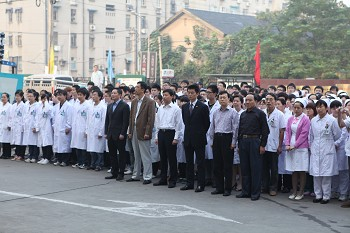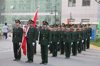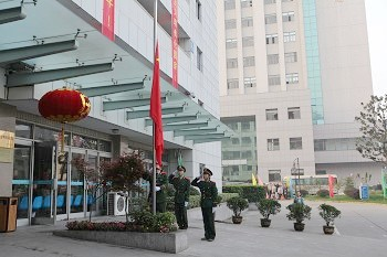 今年是中華人民共和國成立61周年,為了慶祝偉大祖國六十一歲的生日,9月30日清晨,我院在姜家園院區門診樓前的廣場上舉行了莊嚴的升旗儀式,以特殊的方式表達了全院職工對祖國深深的祝福。 不到七點,門診樓前的廣場上早已站滿了前來參加升旗儀式的醫護人員、職能部門的工作人員和實習同學,統一穿著的工作服在清晨的陽光下顯得分外潔白。 升旗儀式由院黨委周鳴副書記主持,全體院領導參加了整個儀式。七時整,升旗儀式正式開始,伴隨著嘹亮的口號聲,身著整齊軍裝的國旗護衛隊邁著整齊的步伐向廣場走來。國旗護衛隊已成為我院每年國慶升旗儀式的傳統,與往年一樣,本次國旗護衛隊的隊員全由我院職工組成,他們犧牲了休息的時間,一個月來每天都堅持訓練,才有整齊劃一的動作以及昂揚向上的精神。隨著國歌聲的響起,國旗緩緩的上升,全場高唱國歌,向國旗行注目禮。 之后,新進職工代表郭志睿和2009年度我院“十佳服務明星”代表急診科竺興霞護士分別作了發言。之后,魯翔院長做了講話。魯院長表示,今年是祖國成立61周年,明年我院也將迎來60歲的生日,因此醫院是伴隨著祖國的繁榮進步成長、發展和壯大。近幾年來,在全院職工的共同努力下,我院取得了長足的進步。托管原南京市三院,成功創建三級甲等醫院,這些成績的取得離不開每位職工的點滴奉獻。魯院長指出,隨著創建三甲任務的完成,我院進入了上水平的關鍵階段,我們不能滿足于取得的成績。每年一度莊嚴簡樸的升旗儀式,正是我們回眸過去、展望未來的一個契機。魯院長希望全院職工繼續努力,把我院建設的更美好,為病人提供更優質的服務。最后,魯院長代表醫院祝全體職工國慶快樂,祝大家過一個快樂祥和的假期。