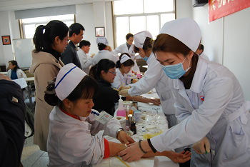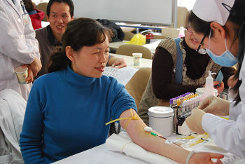 ——院慶系列活動(dòng)之無(wú)償獻(xiàn)血 為慶祝建院60周年,我院在12月28日組織了一次大型無(wú)償獻(xiàn)血活動(dòng),以實(shí)際行動(dòng)回饋社會(huì)。據(jù)統(tǒng)計(jì),本次獻(xiàn)血的共有79名職工,獻(xiàn)血總量達(dá)到17100毫升。其中1人獻(xiàn)血400毫升,11人每人獻(xiàn)血300毫升, 早上8點(diǎn),省血液中心的采血人員剛到行政樓五樓大會(huì)議室,門口就已經(jīng)排起了長(zhǎng)隊(duì)。很多同志一早從家里出發(fā)直接趕到醫(yī)院準(zhǔn)備獻(xiàn)血,有的是一邊吃著早飯一邊在排隊(duì)等候,很多薩家灣院區(qū)職工都放棄了坐班車的機(jī)會(huì),自己坐車趕來(lái)。在獻(xiàn)血現(xiàn)場(chǎng),到處洋溢著溫暖,四處流淌著感動(dòng)。參與獻(xiàn)血的人員有序的排隊(duì)等候,經(jīng)過(guò)信息登記、量血壓、驗(yàn)血型等基本檢查環(huán)節(jié)后,便由專業(yè)人員進(jìn)行采血。黨委副書記周鳴和黨辦主任蔡鈞驊等幾位中層干部和7位護(hù)士長(zhǎng)參加了獻(xiàn)血,他們中有多人都不是第一次獻(xiàn)血,有的甚至是第四次、第五次了。周書記在排隊(duì)的間隙還不時(shí)向身邊的同志詢問(wèn):“是不是第一次獻(xiàn)血?早上吃過(guò)早飯了嗎?回去之后要注意休息……”關(guān)心的話語(yǔ)讓大家感到特別的溫暖。幾位剛工作的小護(hù)士說(shuō):“每每自己給病人扎針都不緊張,可是輪到自己被扎針了,手心都出汗了。”為此,部分科室還派出了陪同人員專門陪護(hù)她們消除緊張情緒。此次獻(xiàn)血,除了有醫(yī)生、護(hù)士、醫(yī)技人員、行政人員還有很多后勤保障人員。周書記在獻(xiàn)完血之后未作任何休息又立即去上專家門診了,幾位護(hù)士長(zhǎng)也在獻(xiàn)過(guò)血后隨即投入到病區(qū)工作中去,就連幾位廚師也為了不耽誤大家中午開(kāi)飯,也“插隊(duì)”先獻(xiàn)完后接著上班了。 省血液中心的同志說(shuō):“每年到血荒的時(shí)候,二附院的職工就積極參與獻(xiàn)血,特別讓我們感動(dòng)。你們不僅是用自己高明的醫(yī)術(shù)救治了病人,還用自己的熱血搶救了病人。”