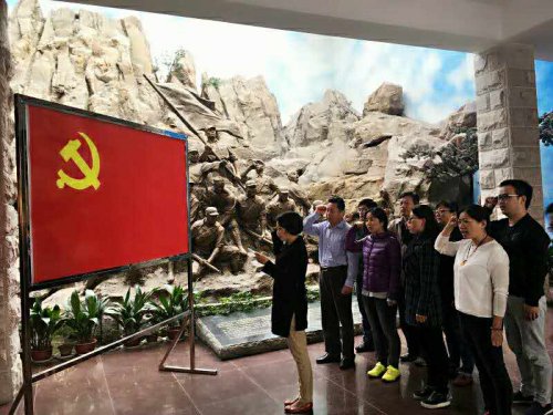 為了紀(jì)念建黨95周年、紅軍長(zhǎng)征勝利80周年,激勵(lì)黨員堅(jiān)定理想信念,為支部扎實(shí)推進(jìn)“兩學(xué)一做”學(xué)習(xí)教育活動(dòng),10月15日,薩家灣院區(qū)門診黨支部組織全體黨員赴茅山新四軍紀(jì)念館開展了“緬懷先烈、銘記歷史、重溫入黨誓詞”主題黨日活動(dòng)。 10月15日早晨,天空飄著細(xì)雨,薩家灣院區(qū)門診黨支部的全體黨員來(lái)到了坐落在茅山腳下的新四軍紀(jì)念館,重溫新四軍在蘇皖地區(qū)進(jìn)行抗日戰(zhàn)爭(zhēng)的英勇事跡,接受革命傳統(tǒng)教育和歷史的洗禮。 新四軍紀(jì)念館座落在句容城東南25公里處的茅山鎮(zhèn)。紀(jì)念館門廳中屹立著陳毅同志身著戎裝,手持望遠(yuǎn)鏡的古銅色全身塑像。紀(jì)念館前樓展廳陳列內(nèi)容分為“蘇南人民奮起抗擊日本侵略軍”、“茅山抗日根據(jù)地的開辟”、“茅山新四軍東進(jìn)北上”、“蘇南抗日根據(jù)地的艱苦堅(jiān)持”、“蘇南人民奪取抗日斗爭(zhēng)的勝利”五大部分。后樓為“將帥館”, 整個(gè)展覽分為元帥廳、大將廳、上將廳、中將廳、少將廳、犧牲將領(lǐng)廳和未授銜將軍廳等七大部分。大家懷著崇敬的心情,參觀新四軍紀(jì)念館,紀(jì)念館陳列史料翔實(shí),內(nèi)容豐富,圖文并茂地展示了陳毅、粟裕等老一輩無(wú)產(chǎn)階級(jí)革命家的光輝業(yè)績(jī)和崇高形象,生動(dòng)再現(xiàn)了當(dāng)年新四軍與蘇南人民浴血奮戰(zhàn)的悲壯場(chǎng)面,大力弘揚(yáng)了革命理想高于天的忘我獻(xiàn)身精神,彰顯了與人們?nèi)罕娚老嘁馈⒒茧y與共的魚水情懷。全體黨員一邊參觀,一邊感受著一件件真實(shí)的新四軍抗戰(zhàn)物品、一幅幅新四軍將領(lǐng)照片,仿佛親眼目睹了一幕幕新四軍浴血奮戰(zhàn)的歷史場(chǎng)景,深深地被革命先烈的精神所感動(dòng)。 通過參觀紀(jì)念館,憑吊革命先烈,大家深切感受到了老一輩革命家?guī)ьI(lǐng)新四軍在極端惡劣的環(huán)境中創(chuàng)下光輝業(yè)績(jī)的來(lái)之不易,同時(shí)也深刻認(rèn)識(shí)到只有在中國(guó)共產(chǎn)黨領(lǐng)導(dǎo)下,我們的革命才會(huì)取得不斷勝利。新四軍精神在全面建設(shè)小康社會(huì)和全面深化改革的今天,仍然具有超越時(shí)空的強(qiáng)大生命力,是激勵(lì)我們前進(jìn)的豐富資源和不竭動(dòng)力。大家紛紛表示要繼承先烈的遺志,發(fā)揚(yáng)光榮的革命傳統(tǒng),把我們各自的工作做得更好。 參觀結(jié)束,在新四軍紀(jì)念館大廳,我們薩家灣院區(qū)門診黨支部全體黨員面對(duì)黨旗舉起右拳,莊嚴(yán)宣誓,“我志愿加入中國(guó)共產(chǎn)黨,擁護(hù)黨的綱領(lǐng),遵守黨的章程------”。通過重溫入黨誓言,全體黨員在此更加明確了責(zé)任和使命,時(shí)刻以黨員的標(biāo)準(zhǔn)嚴(yán)格要求自己,堅(jiān)定理想信念,牢記職責(zé)使命,以更加飽滿的精神、更加熱情的工作態(tài)度、更加扎實(shí)的工作作風(fēng),為醫(yī)院的發(fā)展建設(shè)添磚加瓦。