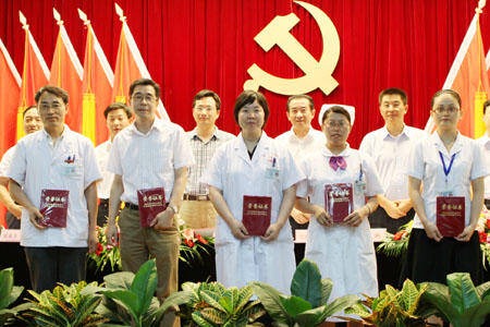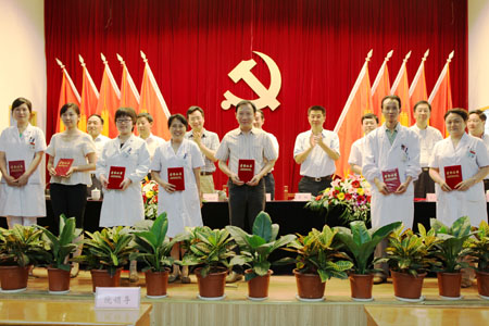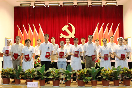 固本強(qiáng)基創(chuàng)先進(jìn),崗位奉獻(xiàn)爭(zhēng)優(yōu)秀,促進(jìn)醫(yī)院上水平 ?????????——我院召開(kāi)“紀(jì)念建黨八十九周年暨‘創(chuàng)先爭(zhēng)優(yōu)’活動(dòng)動(dòng)員大會(huì)” ? 7月5日下午,我院在薩家灣院區(qū)大禮堂召開(kāi)了“紀(jì)念建黨八十九周年暨‘創(chuàng)先爭(zhēng)優(yōu)’活動(dòng)動(dòng)員大會(huì)”。南醫(yī)大黨委伏延新副書(shū)記、黨辦沈瑞林主任和我院全體院領(lǐng)導(dǎo)出席了會(huì)議。我院黨委周鳴副書(shū)記主持了本次大會(huì);陳振華副書(shū)記首先代表院黨委宣讀了表彰5個(gè)先進(jìn)黨支部、24名優(yōu)秀共產(chǎn)黨員和5名優(yōu)秀黨務(wù)工作者的決定;季國(guó)忠書(shū)記做了創(chuàng)先爭(zhēng)優(yōu)活動(dòng)的動(dòng)員報(bào)告,他回顧了近幾年來(lái)醫(yī)院黨委的主要工作和成績(jī),并就我院深入開(kāi)展創(chuàng)先爭(zhēng)優(yōu)活動(dòng)的重要意義、指導(dǎo)思想、目標(biāo)要求、主要內(nèi)容、方法步驟、推進(jìn)方式進(jìn)行了動(dòng)員。他指出此次我院的活動(dòng)的主題是“固本強(qiáng)基創(chuàng)先進(jìn),崗位奉獻(xiàn)爭(zhēng)優(yōu)秀,促進(jìn)醫(yī)院上水平”。同時(shí),強(qiáng)調(diào)了我院的創(chuàng)先爭(zhēng)優(yōu)活動(dòng)要圍繞深化公立醫(yī)院改革、全面加強(qiáng)醫(yī)療質(zhì)量管理、規(guī)范醫(yī)療服務(wù)行為、加強(qiáng)醫(yī)德醫(yī)風(fēng)建設(shè)、實(shí)施國(guó)家基本藥物制度等方面,通過(guò)實(shí)行“勝服務(wù)”戰(zhàn)略,開(kāi)展“創(chuàng)崗建區(qū)”、“滿意窗口”競(jìng)賽、黨員掛牌上崗、履行服務(wù)承諾、自覺(jué)接受監(jiān)督等形式,根據(jù)臨床、醫(yī)技、行政、后勤等部門(mén)的不同特點(diǎn),提出開(kāi)展創(chuàng)先爭(zhēng)優(yōu)活動(dòng)的具體要求,打造衛(wèi)生醫(yī)務(wù)工作者的良好形象,提高黨組織的凝聚力、戰(zhàn)斗力和創(chuàng)造力,引導(dǎo)黨員履職盡責(zé)創(chuàng)先進(jìn),立足崗位爭(zhēng)優(yōu)秀,推動(dòng)創(chuàng)先爭(zhēng)優(yōu)活動(dòng)上水平、見(jiàn)實(shí)效。 南醫(yī)大黨委伏延新副書(shū)記發(fā)表了講話,他首先對(duì)我院黨委這幾年來(lái)的工作做出了充分的肯定,同時(shí)他要求大家高度重視此次活動(dòng),緊密結(jié)合醫(yī)院的實(shí)際情況,做到“兩手抓、兩不誤、兩促進(jìn)”,為醫(yī)院和學(xué)校共同發(fā)展提供堅(jiān)實(shí)的政治保證和組織保障。 會(huì)上,有7位同志做了精彩的“勝服務(wù)”的演講。他們感人至深的親身經(jīng)歷和追求高質(zhì)量服務(wù)的理念使得大家感到既催人奮進(jìn)又深受啟發(fā)。隨后,進(jìn)行了莊嚴(yán)而神圣的新黨員入黨宣誓。在這一批新黨員中有一位特殊的同志——袁同洲醫(yī)生。前幾天,他在工作中摔傷骨折了,雖然剛做完手術(shù),但他得知今天新黨員的宣誓活動(dòng)后,仍然堅(jiān)持趕到現(xiàn)場(chǎng)坐在輪椅上和大家一起宣誓。他的這種強(qiáng)烈的黨員意識(shí)贏得了在場(chǎng)所有人的熱烈掌聲。 最后,魯翔院長(zhǎng)作了總結(jié)講話,他以一名老黨員的身份號(hào)召全院黨員和職工積極投入到爭(zhēng)先創(chuàng)優(yōu)的活動(dòng)中,把握細(xì)節(jié),服務(wù)病人,保持積極向上的精神面貌,結(jié)合日常的工作情況,用實(shí)際行動(dòng)來(lái)回報(bào)黨和社會(huì)。大會(huì)在雄壯的《國(guó)際歌》中落下帷幕。 ? 先進(jìn)黨支部、優(yōu)秀共產(chǎn)黨員和優(yōu)秀黨務(wù)工作者名單 一、先進(jìn)黨支部(5個(gè)): 內(nèi)科總支三支部,外科總支一支部,醫(yī)技總支薩家灣院區(qū)門(mén)診支部,機(jī)關(guān)總支姜家園院區(qū)后勤支部,婦兒支部 二、優(yōu)秀共產(chǎn)黨員(24名): 陶立翠? 張柳波? 李云濤? 曹英娟? 王岐英? 孫伏喜? 曹?琳 朱? 祥? 鐘小溱? 汪云祥? 劉平宇? 陳? 晨?蔡? 軍? 許寶祥 劉昔榮? 張淑芬? 潘良美? 梁嘉一? 李? 誠(chéng)? 季愛(ài)春?王靜靜 鄭江麗? 殷? 勤? 顧天嬌 三、優(yōu)秀黨務(wù)工作者(5名):周? 鳴? 蔡玉坤? 汪觀芳? 王? 燕?蔡鈞驊 ?