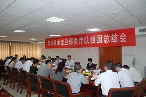 踐行使命??? 載譽歸來 ? 2010年7月1日下午4時,省衛生廳11樓會議室里不時傳出陣陣掌聲和歡笑聲,第八期援圭亞那醫療隊回國總結會報告會正在這兒熱烈舉行。會議由廳國合處石志宇處長主持,黃祖瑚副廳長、省人民醫院王虹院長、我院周鳴副書記、全體援圭亞那醫療隊隊員,省廳國合處、省人醫及我院相關職能科室負責同志出席了會議。首先由醫療隊隊長胡寅主任對兩年的援圭醫療隊工作進行了總結匯報,胡主任從七個方面詳細介紹了醫療隊員們在圭亞那期間的工作、生活情況:由于醫療隊工作突出,得到了圭亞那政府和我國駐圭使館的高度贊揚,圭亞那衛生部向隊員們頒發了金牌,大使館授于隊員“民間友好使者”的稱號。 隨后,援外隊員們也都打開了話匣子,敞開胸懷,暢談兩年援外生活的感受和體會,其中有苦、有樂、又算、有甜、有興奮、有悲傷、有自豪、有郁悶……、讓與會的所有人都情不自禁的隨著他們的講述而感慨激動。顯而易見那段經歷已經深深的烙在他們的記憶中,并將成為一份寶貴的財富陪伴他們的一生。 周鳴副書記代表我院領導作了講話,她充分肯定了醫療隊員們在兩年援外醫療工作中所做出的貢獻,表示要在全院大力宣傳和表彰他們那種舍小家、為國家、克服困難、努力工作的無私奉獻精神,同時將妥善安排好隊員的工作和學習生活。 黃祖瑚副廳長在發言中高度評價了第八期援圭亞那醫療隊的工作,夸獎他們是一支有著光榮傳統的優秀隊伍,在圭期間所做的貢獻可以說是空前的,隊員們團結友愛,親密無間,彼此間結下了深厚的友情。兩年間致力于圭亞那的醫療工作,熱情為廣大圭國人民提供最好的醫療技術和服務,他們的優質工件贏得了圭亞那人民的尊敬和國外同行的肯定、贊揚,作為民間交流大使架起了中圭友誼之橋。最后,黃祖瑚副廳長感謝省人民醫院和我院兩個派員單位的大力支持,并要求我們繼續做好工作,提供條件安排好隊員的休息、學習和工作,希望隊員們繼續發揚援圭醫療隊的光榮傳統,今后在醫院的工作中再創佳績。 ???