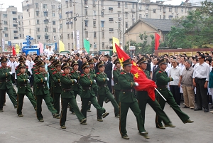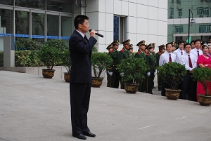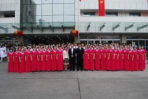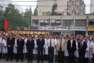 ? 9月30日上午,為了慶祝中華人民共和國成立60周年,我院在姜家園院區門診樓前的廣場上舉行了莊嚴而隆重的升國旗儀式。南京醫科大學陳國鈞書記、江蘇省衛生廳副廳長黃祖瑚、江蘇省衛生廳醫政處處長李少冬蒞臨我院,全體院領導和全院廣大職工都參加了升旗儀式。 升旗儀式由院黨委副書記周鳴主持。早晨7時整,升旗儀式正式舉行,在雄壯的軍樂聲中,身著軍裝的國旗護衛隊邁著整齊豪邁的步伐向大家走來,整個護衛隊的成員都是由我院職工組成,他們為了完成此次升旗儀式的護旗任務,利用空余時間苦練了一月有余,整個儀式中,他們步伐矯健,動作整齊劃一。在恢宏的國歌聲中,升旗手緩緩將國旗升起,全場所有人肅然起敬,對國旗行注目禮,整個儀式莊嚴而隆重。 升旗儀式后,江蘇省衛生廳黃祖瑚副廳長現場宣讀了省衛生廳關于確定南京醫科大學第二附屬醫院等級的通知。經省衛生廳調研初評和現場評審,我院正式被認定為三級甲等綜合醫院,圓了醫院全體職工多年來的夙愿。 接著,南醫大陳國鈞書記為大家做了重要的講話,陳書記在講話中表示,此次二附院舉行升旗儀式,體現了醫院對祖國六十華誕的良好祝愿。陳書記指出,六十年來,華夏大地發生了翻天覆地的變化,我們二附院是伴隨著祖國改革開放的腳步長大的,醫院從三十年前一個不起眼的小醫院,發展壯大成今日三級甲等的綜合性大醫院,凝聚了二附院幾代人的努力和心血,寄托了全體二附院人的夢想和心愿。陳書記強調說,二附院能夠有今天的成績,一切凝聚在兩個字上——發展,發展是硬道理。為此,陳書記希望,全院能夠繼續團結一致,科學發展,抓住機遇,迎接挑戰,為醫院新一輪的發展做出新的貢獻。 陳書記講話后,由我院職工組成的合唱團為大家獻上了精彩的合唱表演。我院合唱團憑借《在燦爛的陽光下》、《天路》兩首歌曲,在省衛生廳舉辦的慶祝建國60周年的比賽中喜獲第一。今天,合唱團的全體成員又以飽滿的熱情,為大家精彩演繹了這兩首歌曲,贏得了在場領導和職工們的陣陣掌聲。 最后,魯院長指出,值此祖國60華誕之際,我院被評為三級甲等醫院,是醫院過去三年全院職工辛勤工作的回報,更是30年來醫院幾代人奮斗的成果。魯院長感謝了全院職工這些年來為了醫院發展所做出的奉獻和犧牲。同時,魯院長希望全院能夠在新的發展周期中,不懈努力,為醫院下一輪的持續發展繼續貢獻力量。 ?
