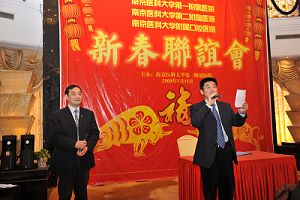 共建合作平臺? 實現共同發展 ? 1月18日中午,我院與南京醫科大學、南醫大一附院、南醫大附屬口腔醫院在蘇寧環球套房飯店舉行2009年新春聯誼會,聯誼會由一附院黨委陳亦江書記主持,我院魯翔院長和一附院王虹院長、附屬口腔醫院王林院長分別匯報了2008年工作情況。 魯翔院長院長在題為《團結拼搏 求真務實 搶抓機遇創新發展》的工作匯報中,重點介紹了2008年我院在省衛生廳、南醫大等上級主管部門的大力支持幫助下,緊緊圍繞創建“三級甲等基本現代化醫院”和“南醫大5年制本科教學示范基地”兩大奮斗目標,以綜合目標管理責任制和醫院管理年活動為抓手,堅持以“服務病人、滿意病人、感動病人”為宗旨,狠抓基礎管理、整治醫療環境,同時規范流程、精細管理、強化服務,努力提升醫院核心競爭力等方面所取得的成效,并指出2009年將是我院再上新臺階的關鍵一年,任務艱巨,責任重大。我們將虛心向老大哥醫院學習,按胡錦濤總書記提出的“不動搖、不懈怠、不折騰”的“三不”精神,時刻保持強烈的危機意識和團隊意識。繼續保持高昂的精神狀態,搶抓機遇、埋頭苦干、創新進位、和諧發展,力爭圓滿完成我們的各項工作任務! 為了加強各附屬醫院之間的技術合作,促進資源共享,實現共同發展,在聯誼會上我院與一附院、口腔醫院分別簽訂了意向性合作協議。南醫大黨委陳國鈞書記在隨后的講話中對三所附屬醫院建立合作關系、促進共同發展的做法表示肯定和鼓勵。 ?