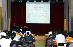 南醫(yī)大陳國鈞書記應(yīng)邀 ? 來我院做管理干部培訓(xùn)講座 ? 3月24日下午,我院在薩家灣院區(qū)大禮堂舉行管理干部培訓(xùn)班,受魯翔院長邀請,南京醫(yī)科大學(xué)黨委陳國鈞書記親臨學(xué)習(xí)班,為我院近300名中層干部、副高以上醫(yī)護(hù)人員做了題為《管理與管理科學(xué)》的專門培訓(xùn)講座。 陳國鈞書記從管理實(shí)踐的歷史啟示、對管理活動(dòng)的理性認(rèn)識、管理科學(xué)、管理者四個(gè)大的方面闡述了管理與管理科學(xué)的淵源、發(fā)展和規(guī)律。陳書記指出:管理是最富有活力和創(chuàng)造性的行為,是調(diào)節(jié)社會(huì)生產(chǎn)方式內(nèi)在矛盾的手段,更是促進(jìn)社會(huì)經(jīng)濟(jì)發(fā)展的重要杠杠。管理實(shí)踐是一門藝術(shù),管理者的能力對事業(yè)的興衰成敗起著決定性的作用。因此,每一位管理者,都應(yīng)該認(rèn)真學(xué)習(xí)管理理論,掌握管理科學(xué)。 陳書記旁征博引,以敏銳獨(dú)到的視角、精辟的分析和論證了管理科學(xué)研究的核心——人與人的關(guān)系,即如何去調(diào)動(dòng)人的積極性。他語重心長的強(qiáng)調(diào):作為管理者,學(xué)好管理科學(xué)是一項(xiàng)歷史使命,要從管理的規(guī)律和原理入手,理論與實(shí)踐相結(jié)合,學(xué)習(xí)與創(chuàng)造相結(jié)合,去認(rèn)真的學(xué)習(xí)管理科學(xué)。真正確立科學(xué)管理的思想觀念,引進(jìn)和創(chuàng)建管理科學(xué),普及科學(xué)管理知識,培養(yǎng)出一大批優(yōu)秀的管理人才。 陳書記精彩睿智的演講吸引了全場人員高度關(guān)注的目光,兩個(gè)多小時(shí)的講座不知不覺就過去了,大家都深有感觸:管理這個(gè)人類最古老、最普遍、最大量的社會(huì)現(xiàn)象太有魅力了;作為一門年輕的科學(xué),管理科學(xué)確實(shí)值得我們?nèi)フJ(rèn)真思考、去努力探索。 ?