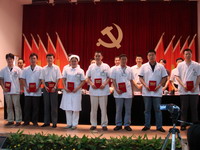 暨抗震救災先進事跡報告會 ? 7月1日下午,二附院在薩家灣院區大禮堂舉行隆重紀念中國共產黨建黨87周年暨抗震救災事跡報告會,兩院300余名黨員代表、積極分子到會聆聽了報告。省衛生廳直屬機關黨委周政興書記、李慶榮副書記、南醫大黨委伏延新副書記、組織部徐霞副部長應邀出席了報告會。 報告會由二附院黨委周鳴副書記主持,第一個議程是表彰先進基層黨組織和優秀黨員,兩院一共有三個基層黨組織和31名黨員受到表彰。緊接著20名新黨員站到了鮮艷的黨旗下,在南醫大著名兒科老專家陳士垣教授的帶領下,舉行了莊嚴的入黨宣誓。隨后,二附院赴川抗震救災醫療隊的汪寶林副院長、黃野主任、葛琳俐護師和二附院愛心病區主任張建平博士、柏傳米護師分別上臺作演講報告。他們聲情并茂的演講深深打動了臺下的黨員代表們,贏得了全場一陣陣熱烈的掌聲,許多人流下了感動的熱淚。 省衛生廳直屬機關黨委周政興書記和南醫大黨委伏延新副書記均在講話中對二附院近兩年來的發展和進步做了充分的肯定,并對在會上獲得表彰的優秀黨員和先進基層黨組織表示了衷心的祝賀,對在抗震救災中做出突出貢獻的二附院醫療隊員們表示了親切的慰問! 最后,魯翔院長代表院黨委、院行政對省衛生廳和南醫大對二附院這些年來的全心關懷、支持和幫助表示了衷心的感謝!魯翔院長指出:盡管我們取得了長足的進步,但我們面臨的形勢仍很嚴峻,我們需要攻堅的關口還很多,他號召全院黨員、干部、職工,繼續弘揚抗震救災無私奉獻的精神,發揚多難興邦、多難興黨、多難興院的精神,團結一心、奮力拼搏,為盡快把二附院建設成合格的現代化三甲醫院和合格的南醫大教學基地做出不懈的努力! ????