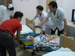 ?????????????????????????????? 昨晚7時許,23位從四川成都空運來的傷員在南醫大二附院愛心病區安置下來以后,短短的一天時間內,二附院全院上下以及南京市民們傾情關愛,為傷員們營造了一個真正的愛心之家。 ?????????????? ? 通宵達旦查病情 為了確保傷員的生命安全和康復治療,所有傷員的傷情必須在入院后的第一時間全部摸清,愛心病區的醫護人員們通宵達旦,察看了全部傷員的傷情,對傷口進行了清創和重新處理;物理診斷科、放射科、檢驗科的同志接到通知后,全部主動加班,沒有一人提前下班,檢驗技師到床邊為每一位傷員抽血,并在最短的時間內發出報告;物理診斷科王蔚蔚主任親自推著機器到病房做床邊B超,當場檢查當場寫報告;放射科周良主任主動到病房了解傷員的情況,華明生醫生和小醫生們一起推著沉重的X光機到傷員床邊攝片,楊亞芳主任與CT室的技師們忙著為傷員檢查,連晚飯都顧不上吃,一個個汗流浹背,用最快的速度洗片、看片、寫報告,一直忙到深夜12點多鐘。 經過認真的檢查,他們發現了不少傷員的傷情與原先的判斷有一定的出入,考慮到由于當時的搶救比較急,可能不太細,有的報軟組織挫傷的傷員實際上有多處骨折,象重傷員余德華,原來的病歷報告上就寫著“全身多處軟組織挫傷”,經過這次檢查后發現,他其實是全身多處骨折。管床醫生們根據醫技科室檢查的結果,連夜看片、寫病歷、及時調整治療方案,落實新的治療措施。護理部主任張淑芬、副主任趙海鳴以及大外科、大內科護士長等一直在病區組織、協調所有的護理工作,配合醫療方案落實各項護理措施。等這一系列的工作落實到位后,天已經蒙蒙亮了。 ? ? 全力以赴救傷員 傷員入院的當天晚上,在為他們檢查身體的過程中,醫生們發現:一名來自綿陽的43歲男性傷員精神萎頓、面色蒼黃,出現中毒性休克癥狀,在其轉來的病歷上寫著:小腸穿孔、中毒性休克、全身多處軟組織挫傷、腹部外傷術后。認真查看之下,該傷員的傷情遠比病歷上的要嚴重,其呼吸急促、心率很快、血象高、血色素很低,胸腔有大量積液,除了小腸穿孔外,還有胸骨骨折、鎖骨骨折、骨盆骨折,腹部長達十幾公分的刀口化膿、滲液。感染十分明顯,打開腹腔后,里面全是膿液,在進行了對癥處理后,為了對傷員的生命負責,醫院先后組織了本院相關科室的專家會診,同時還邀請了省人醫的專家和南京軍區總院的專家前來會診,制訂了切實有效的治療方案。 整整一夜時間,病區張建平主任和醫護人員們都沒合眼,副院長季國忠一直坐鎮現場部署搶救會診治療,省衛生廳黃祖瑚副廳長三次來電話了解這位傷員的搶救情況。大家都在為這位傷員的病情而緊張、操心。陪同這位傷員來南京的是他的妻子,看到二附院上上下下為她的丈夫盡心盡力,她非常感動,不停的表示謝意,她告訴醫護人員:19歲的兒子已經在大地震中不幸遇難,而丈夫還不知道這個消息,她哽咽著懇求醫護人員千萬不要告訴丈夫兒子已遇難的事,并且一再表示:感激二附院的醫護人員對她丈夫的全力救治。 ? ?????????????????????于細微處見真情 傷員們住下來后,二附院在服務上用情之深、用情之細、用情之真,讓每一位傷員和家屬都深深地感動。醫院領導在傷員剛剛住下后,即召集其家屬于病區小會議室,給他們一家發一個裝有500元現金和一封歡迎信的信封,500元是全院職工所捐的義款,留作他們的零用錢,歡迎新上寫明了病區主任、護士長、醫生的電話號碼,方便傷員及家屬聯系。護理部為每一位傷員配齊了盥洗用品,從毛巾、牙刷、牙膏、梳子、香皂、沐浴液、護膚用品等無微不至。對幾位小傷員,他們購買了玩具、小零食送到床邊,并買來了動畫碟片在病房的液晶電視上播放;食堂負責人和營養師在第一時間拿出了傷員一周食譜,親臨每一個傷員的床前詢問對飲食的要求、個人的口味,并發給每位傷員人手一瓶特制川椒,不少傷員拿著川椒都流下了眼淚。到了吃飯時,護士們和志愿者一起為傷員送飯到床頭,并且主動為重傷員和小傷員喂飯。 醫院的青年團員志愿者們在服務中發現,因為來時匆匆、家屬們也沒有護理經驗,傷員們的頭都很臟,女性傷員的長頭發都打了結,散發出很濃的異味,于是三位志愿者婁瑩、張婷婷、王穎主動地為23位傷員都把頭洗了一遍,他們一個用洗發液洗、一個用溫水沖,一個用電炊風吹,將傷員的頭洗得干干凈凈。一名38歲的女性傷員因全身多處骨折、左腿嚴重腫脹,入院后一直眉心打結、悶悶不樂,哼哼著喊疼,醫護人員問她話,她很少回答,都是丈夫代為應答。洗完頭后,保健科王立珍主任又為她仔細將蓬亂的長發修剪整齊,收拾得干干凈凈,大家發現她緊鎖的眉頭終于松了下來,臉上也有了笑意。???? ?