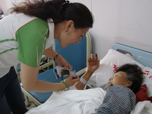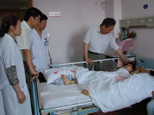 大 愛 如 潮 ? 四川震區(qū)傷員入住我院的兩天時間里,來自上級領(lǐng)導(dǎo)、本院職工和社會各界的關(guān)愛如潮水般的涌向他們,有捐錢捐物的,有送玩具、送點心的,有報名來當(dāng)志愿者的,還有的親手熬好營養(yǎng)湯送來的。這場景讓我們深深感動:大災(zāi)面前,眾志成城;一方有難,八方來援!這就是我們——團(tuán)結(jié)、善良、勇敢、真誠的中國人! ? ????????????????????長大我也要做醫(yī)生 ??????????????????????????—— 8歲的伍怡對陳國鈞書記講 上午9點多鐘,南醫(yī)大黨委陳國鈞書記來到病房看望四川震區(qū)的傷員,當(dāng)他來到8歲的小傷員伍怡床前時,一旁的魯翔院長告訴小伍怡,南京醫(yī)科大學(xué)的黨委書記陳爺爺看你來了,小伍怡向陳書記擺手問好,陳書記關(guān)切的詢問了小伍怡的傷情,并俯身問小伍怡,疼不疼?有沒有哪里不舒服,小伍怡搖搖頭說不疼,沒有不舒服。陳書記夸獎小伍怡:真勇敢!并對小伍怡說:你有什么要求都可以告訴這些醫(yī)生叔叔和護(hù)士阿姨,也可以告訴我,小伍怡歪過頭想了一下,很鄭重的對陳書記說:“長大我也要當(dāng)醫(yī)生!”。聽到小伍怡的心愿,在場的每一位醫(yī)護(hù)人員心里都輕輕的顫動了一下:這位來自四川綿竹的勇敢的小男孩,骨盆嚴(yán)重、恥骨骨折,右肱骨骨折,后尿道損傷,在成都已經(jīng)動過兩次不小的手術(shù),來二附院的兩天時間中,他沒有大哭大叫過,只是靜靜地躺著,偶爾疼得厲害也僅僅是哼哼幾聲。陳國鈞書記的眼眶紅了,他緊緊抓住伍怡的小手,承諾般的對他說,你是個聰明勇敢的好孩子,你的愿望會實現(xiàn)的,到時候一定到我們南京醫(yī)科大學(xué)來讀書,我們歡迎你! ? ? ????????????????小女孩終于有笑容了 ????????????????????——感謝一位每天熬湯送給小女孩的南京媽媽 四川傷員入住二附院的當(dāng)天晚上,一位30歲左右的青年女子帶著自己的女兒來到愛心病區(qū),將每個病房的傷員都看了一遍,然后對對護(hù)士長講,我就住在姜家園桃園府,我想每天給這位來自什邡名叫張瑤的小女孩送飯送湯來,可以嗎?面對她的請求,護(hù)士長無言以對,這是南京媽媽的一片心意、一份愛心,她能拒絕嗎? 第二天中午,這位南京媽媽就熬了一鍋濃湯送到了張瑤的床頭,面對南京媽媽的盛情,11歲的張瑤顯得有點冷漠,陪同她的父親深深地談了一口氣說:這孩子,打從被救出來就沒講過幾句話。很顯然,那場噩夢般的災(zāi)難在小張瑤的心靈上留下了難以抹去的陰影,骨盆骨折、股骨骨折、腹部嚴(yán)重外傷又讓她稚嫩的軀體承受著常人難以想象的痛苦。南京媽媽撫摸著張瑤的頭發(fā),留下了不舍的淚水,她讓自己的小女兒認(rèn)張瑤做姐姐,與張瑤溝通交流,并且親自喂張瑤吃飯、喝湯,擦手、洗臉。晚上,南京媽媽在送湯來的時候,還將親戚家的小孩一同帶來,陪張瑤說著小女孩之間的悄悄話。今天中午,這位南京媽媽又送來了另一種口味的湯,并且還專門做了麻辣味川菜增加張瑤的食欲,還買來了牛奶、點心、漫畫書送給張瑤。 面對著南京媽媽這份真摯獨特的愛,張瑤心中的屏障在漸漸打開,她的臉上露出了久違的笑容——淡淡的、甜甜的、出自內(nèi)心的笑容。 ? ????????????????感謝江蘇人民 ????????????????????——一位四川籍志愿者這樣回答記者 在23位傷員中,有一位80歲高齡的老奶奶,老奶奶右髖關(guān)節(jié)脫位伴骨折,左肩關(guān)節(jié)也有脫位,是23位人中唯一一個無人陪伴的傷員。醫(yī)護(hù)人員將其安排在1號病床,護(hù)士和志愿者們對老奶奶格外關(guān)心照顧。然而老奶奶一直表現(xiàn)得焦慮不安,總是纏著護(hù)士和志愿者說著什么,可由于老奶奶年紀(jì)大了,口齒有些不清,一口四川話讓醫(yī)護(hù)人員們根本無法理解。 大家正在著急的當(dāng)口,一位30歲左右的青年男子來到護(hù)士站,他自報家門,說自己是二附院隔壁鋒尚國際的工作人員,四川瀘州人,是來醫(yī)院做志愿者的,并且遞上了一張身份證復(fù)印件。醫(yī)護(hù)人員們喜出望外,立即把他帶到老奶奶身邊,簡單的一番交流,我們終于知道了老奶奶來自李白故居青蓮鎮(zhèn),她著急焦慮的原因是因為她的親人至今尚無消息,也不知道她已經(jīng)到南京來了,她想讓我們幫她打聽聯(lián)系。聽到這位青年男子的翻譯,大家總算松了一口氣,正在病區(qū)采訪的江蘇衛(wèi)視的記者,立即承諾,可以幫助她想想辦法,見到大家聽懂了她的話,老奶奶開心的笑了。大家對青年男士表示感謝,可他搖搖手,真摯的說:應(yīng)該謝謝江蘇人民! ?