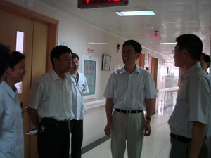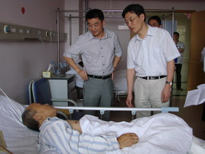 陳琪校長看望災區傷員 ? 5月25日下午16時許,陳琪校長在二附院魯翔院長和季國忠副院長的陪同下,看望了住在二附院“抗戰救災愛心病房”的四川地震災區的傷員和陪護他們的家人。 陳校長逐個病房地看望了傷員,并不時地和他們交談,詢問一些情況,叮囑他們安心治療、安心休養,爭取早日康復,早日重返家園。在看到一個十一歲的小女孩張瑤時,陳校長鼓勵她好好學習,長大了上南京醫科大學。 5月24日《金陵晚報》頭版照片上的那一對老年夫婦,由他們的女兒陪同。可由于女兒想自己的兒子,這兩天顯得不夠安心。得知這一情況,陳校長和魯院長都表示,可以在合適的時候,將孩子接到南京,讓一家人團聚。 陳校長還慰問了愛心病房的醫護人員,囑咐大家不但要治好傷員身體上的傷痛,還要治好他們心靈上的傷痛。 ?