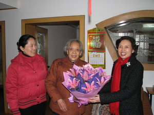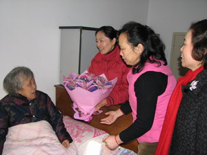 春節前夕領導探望長壽老職工 ? 元月3號上午,院黨委副書記周鳴,離退休科科長季春等冒著嚴寒,帶著院領導班子的關心和全院職工的心意,深情地探望了我院四位90周歲以上的退休老職工孫瀛、黃鎮美、姚宏哲、錢誦芬,為老人們獻上了鮮花和蛋糕券,祝他們生活愉快,福如東海,壽比南山。 當這些老壽星們得知醫院領導要來看望他們時,都異常的開心,孫瀛老人興奮得一夜沒合眼,黃鎮美老人更是早早地起床,不顧兒孫的勸阻,親自把家里收拾得干干凈凈,一直站在窗前,盼望著、等待著……當看到周書記一行人時,老人一個個都緊緊的拽住書記、科長的手,訴說著同一句話:“謝謝書記,謝謝科長。真沒想到,都退休這么多年了,領導還記掛著我們,我們知足了……”雖然是數九嚴冬,外面寒風凜冽,可院領導的看望,卻好似溫暖和煦的春風,將濃濃的暖意送到老人們的家中,送到老人們的心中,讓老人們的臉上綻放出春花般的美麗笑容。 周書記噓寒問暖,親切地詢問著老人們生活得怎樣,吃些什么,晚上睡得如何,并仔細地查看了老人們的衣著、被褥、保暖與否,當得知老人們都與子女生活在一起,都有人照顧時,書記安心地笑了。 臨別之時,周書記一行人再三叮囑老人們:多保重身體,注意生活起居安全,勉勵老人的子女們,繼續弘揚傳統美德,讓老人過得更幸福安康。 ?